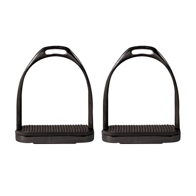 Our popular Stainless Steel stirrup irons coated in black. This great look is popular at the breed shows, and gives a very finished look against black boots.