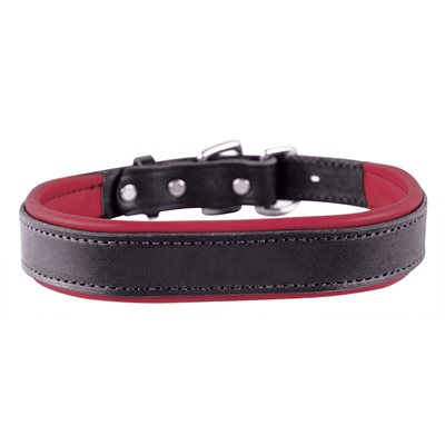 BLACK / RED EXTRA LARGE PADDED LEATHER DOG COLLAR