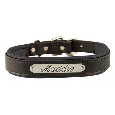 When you want the best for your best friend! Perri's Padded Leather Dog Collars are hand made in America, by Amish craftsmen using only top quality leather. Each cut, stitch and finishing touch is completed by the hands of a small number of these local Amish leather workers. Colorful, genuine lambskin padding makes each piece exquisite. This incredibly soft, luxurious leather not only adds character and beauty to your collar, but also gentleness against your dog's skin. Featuring either a solid brass, or stainless steel roller buckle, these collars were designed to look amazing through years of play, our very own Perri's Pups have made sure of it! Includes engraved plate with up to two lines. Up to 18 characters per line. Please note: Script font is not recommended for for XS/S collars.