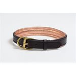 Amish made, soft padded leather dog collar. Matching lead available. Brown collar has solid brass hardware, black collar has stainless steel hardware. Attach an engraved name plate! Go to our engraved products section. X-Small 3/8" x1 13" fitting dogs with 8 - 10" necks. Small: 3/4" x 16" - fitting dogs with 10 - 13" necks. Medium: 1" x 21" - fitting dogs with 12 - 16" necks. Large: 1.25" x 25" fitting dogs with 16 - 20" necks. X-Large: 1.25" x 31" fitting dogs with 20 - 25" necks