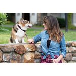 To properly measure for our dog collars, use a soft measuring tape and gently wrap it around your dog’s neck.  Adjust so the tape measure is as snug as your dog would wear their collar. Remember, long hair dogs often have a little extra wiggle room due to their coat. Perri’s recommends if your dog measures between two sizes,  to order the smaller size. As a natural product, leather does stretch over time.